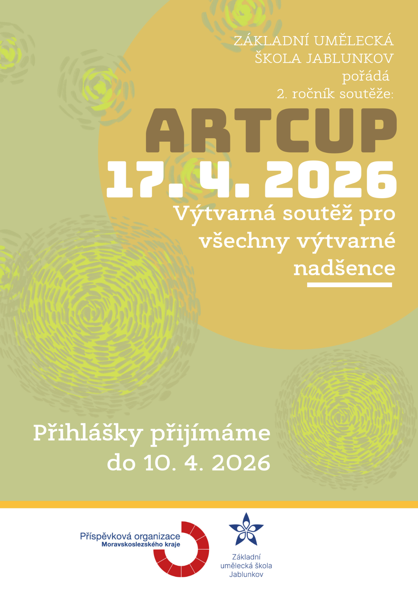 Základní umělecká škola Jablunkov vás zve na 2. ročník výtvarné soutěže ARTCUP, který se uskuteční 17. dubna 2026. Soutěž je otevřena všem výtvarným nadšencům bez ohledu na věk či zkušenosti a nabízí prostor pro sdílení tvorby, vzájemnou inspiraci i radost z uměleckého vyjádření.